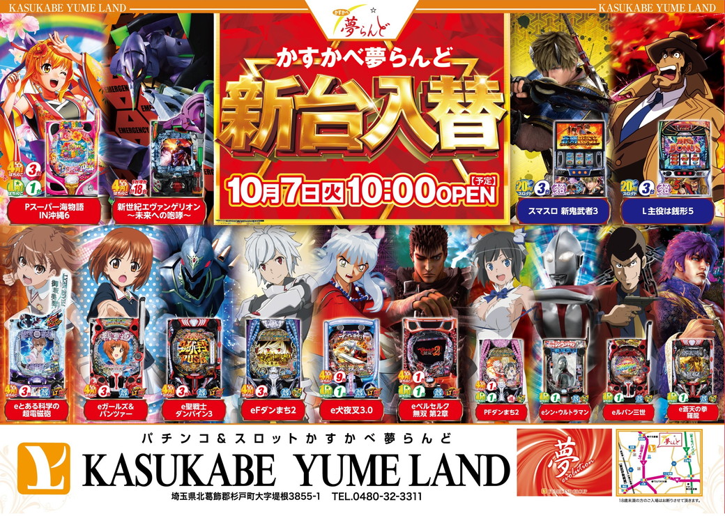 夢らんどHOME > メディア情報 > かすかべ夢らんど > 【かすかべ夢らんど】10/7(火) 新 台 入 替