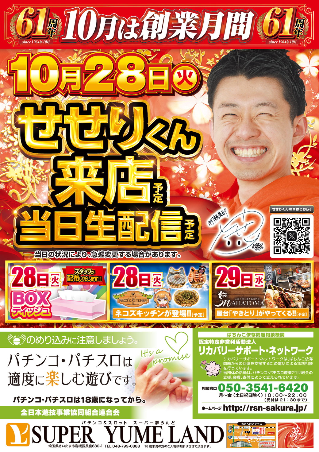 夢らんどHOME > メディア情報 > スーパー夢らんど > 【スーパー夢らんど】10/28(火)来店予定