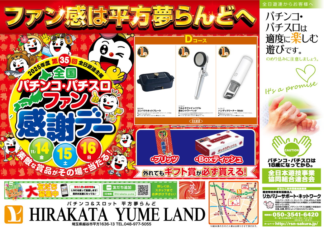 全日遊連主催 全国パチンコ・パチスロファン感謝デー開催!