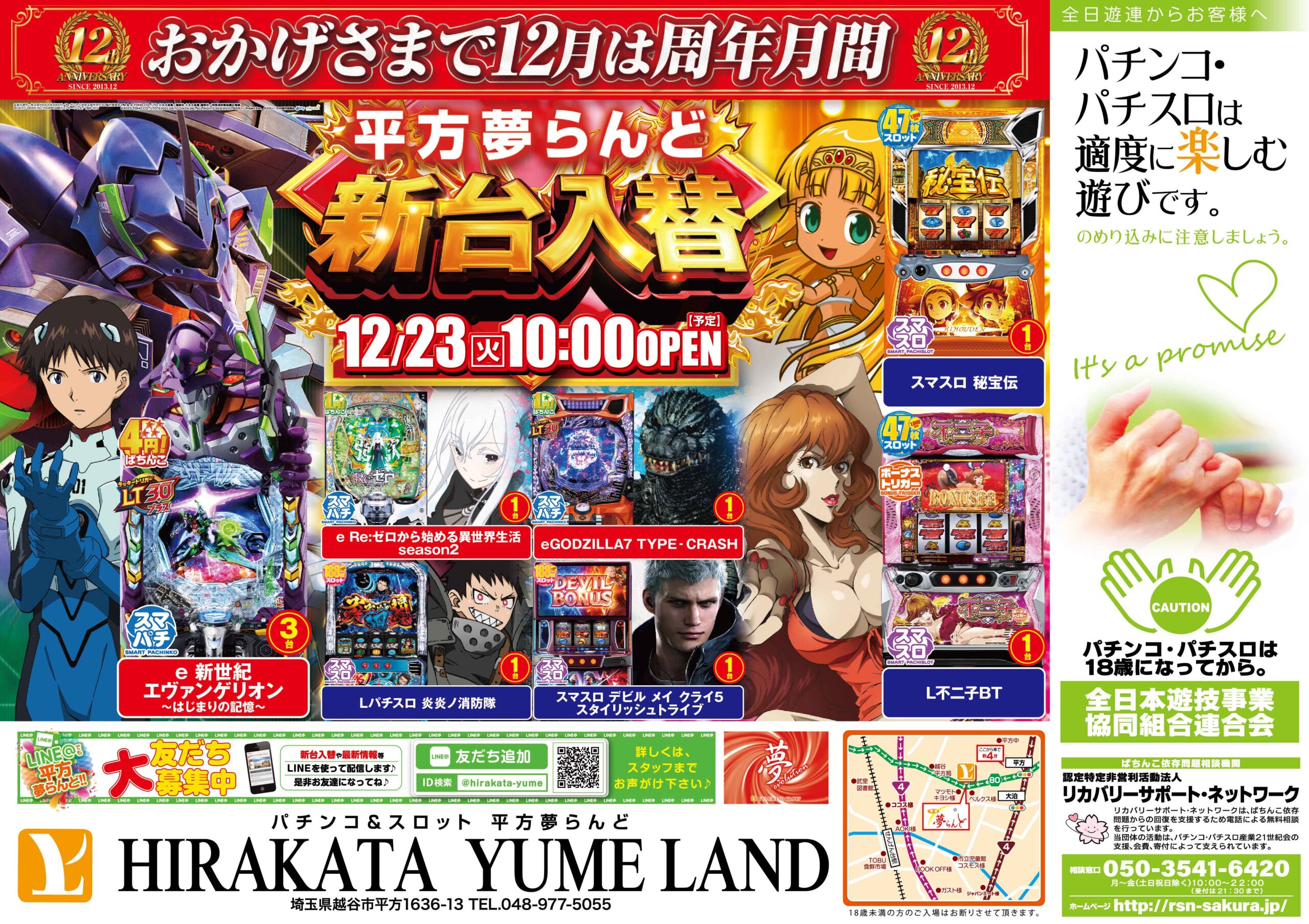 【平方夢らんど】12/23(火) 新 台 入 替!
